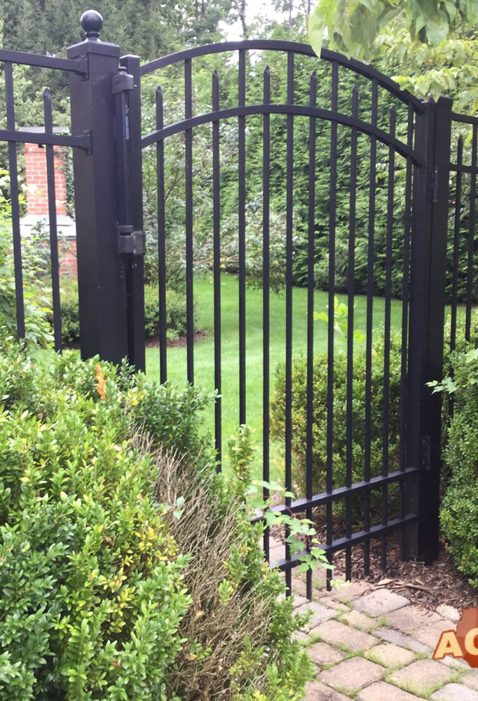 Decorative aluminum fencing enhances curb appeal with custom finials, arched gates, and unique design elements.