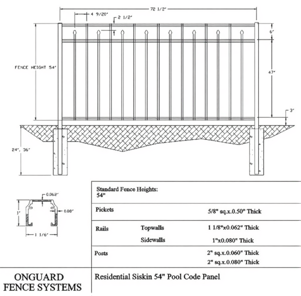 | OGS5463BK | OnGuard Ornamental Aluminum Fence Residential - Siskin | 54in H x 6ft W | Black | Residential | $85.00 |