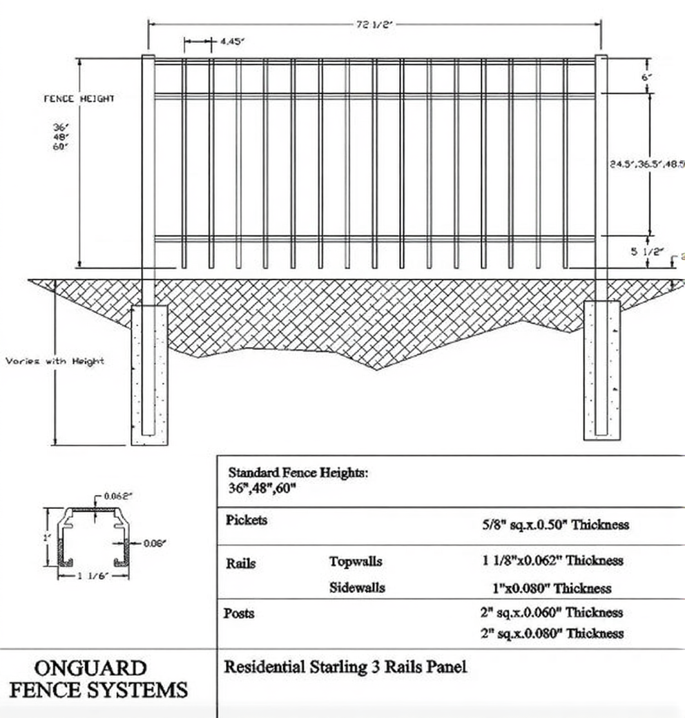 | OGST4863BK | OnGuard Ornamental Aluminum Fence Residential - Starling | 48in H x 6ft W | Black | Residential | $80.00 |